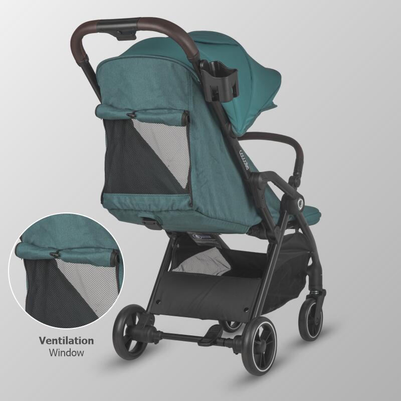 The stroller canopy has generous dimensions, offering UV protection against the sun's harmful rays. Overheating can be considered a thing of the past because the stroller is equipped with both a ventilation window on the canopy and an opening at the back of the product.