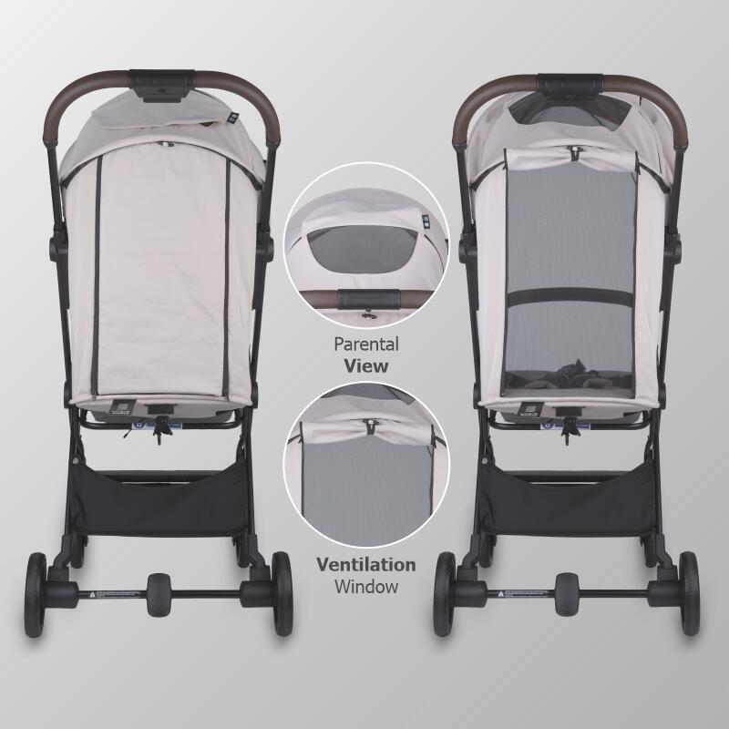 The XXL canopy offers extended protection, and the ventilation window helps to improve air circulation on hot days. And when fatigue sets in, Melia adapts – comfortable positions for relaxation and sleep, so that the walk remains enjoyable for the little one.