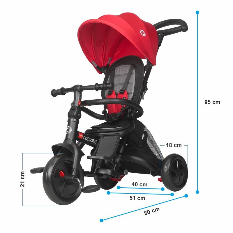 All accessories can be removed as the child grows, finally resulting in a classic tricycle that can be used up to the age of approximately 5 years (maximum weight supported: 25 kg).