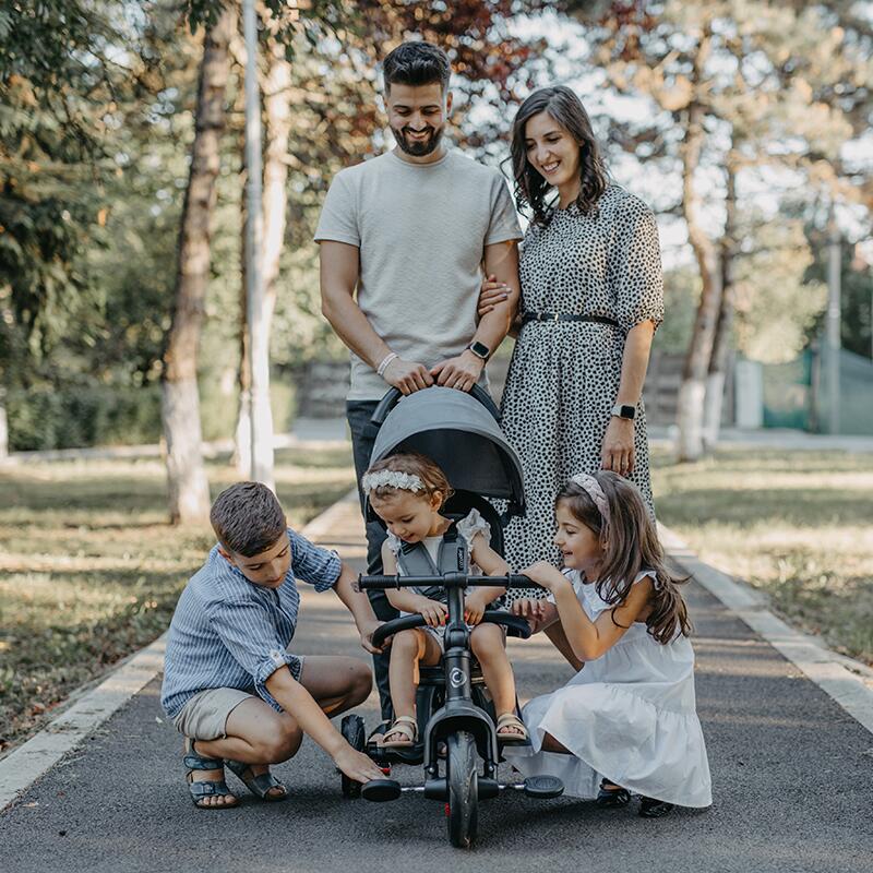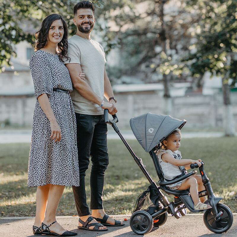 Completely multifunctional, the Alegra tricycle meets the needs of every little one starting from the age of 10 months. Equipped with a rotating seat and sleeping position, the tricycle becomes an indispensable means of transport because it can be used for brisk walks when the little one is awake, but also when fatigue sets in and a nap is so necessary. Moreover, the handlebar is foldable, thus giving such a generous sleeping position when it is used with its back to the direction of travel.