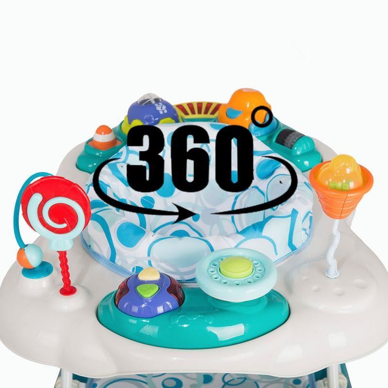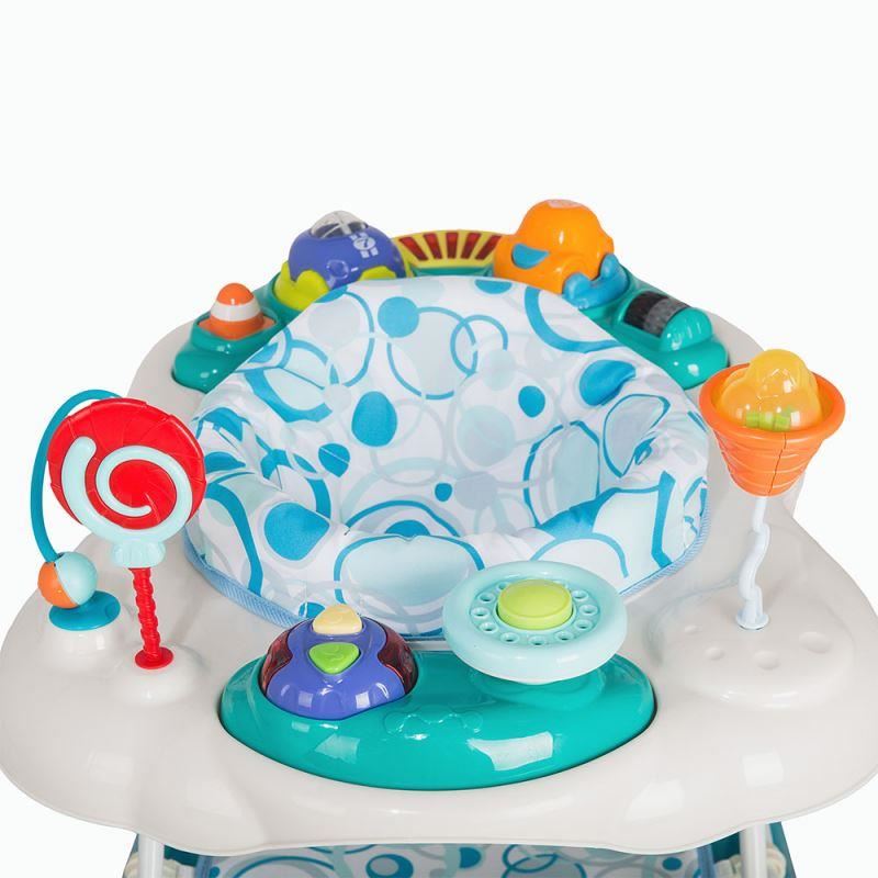 The baby walker is provided with a colorful and attractive activity center for the baby