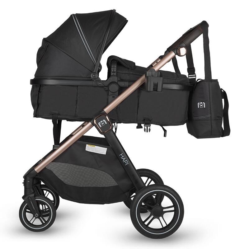 With a modern design and intelligent construction, the new Hapi Soley 3 in 1 is the perfect companion for parents who want a convertible stroller, practical and elegant. The complete system includes a convertible carrycot, sports unit, and I-Size car seat, offering a versatile solution from birth to the child's first steps.