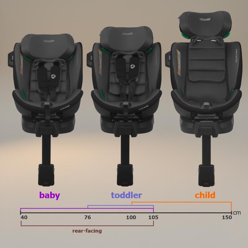 Coccolle Mago is a flexible, evolving chair, produced according to the latest safety standards in the field, suitable for children between 40 and 150 cm tall. Thanks to the 360 degrees rotation system, the use of the seat becomes extremely easy, offering the possibility of wearing it facing forward or backwards, depending on age and safety recommendations.