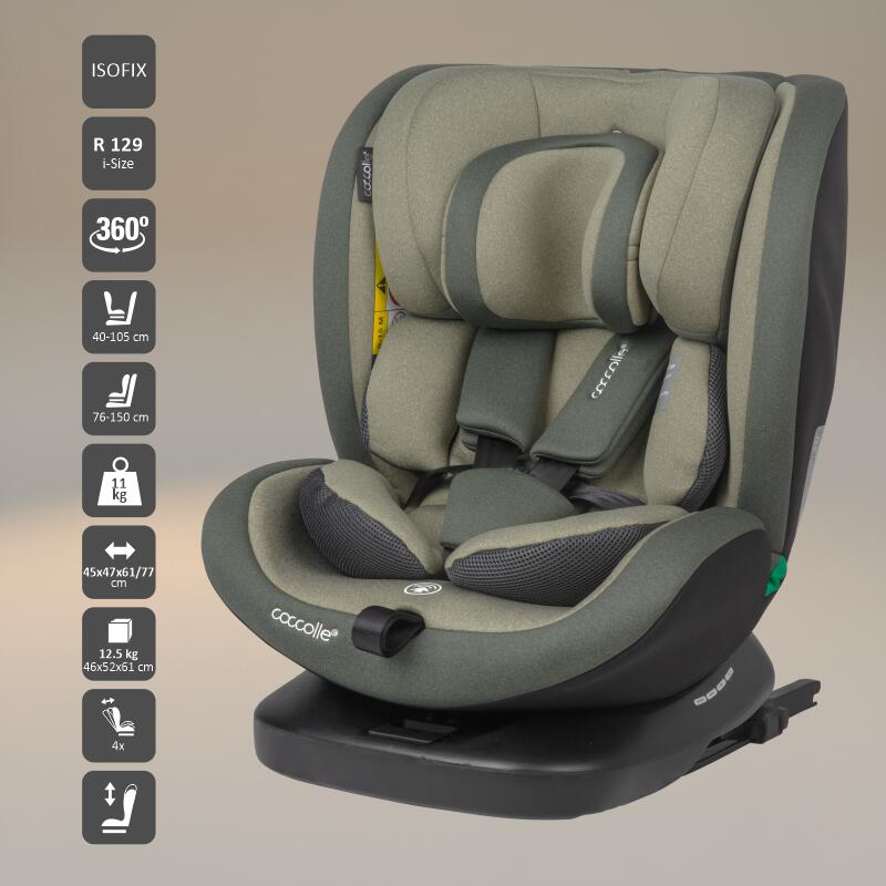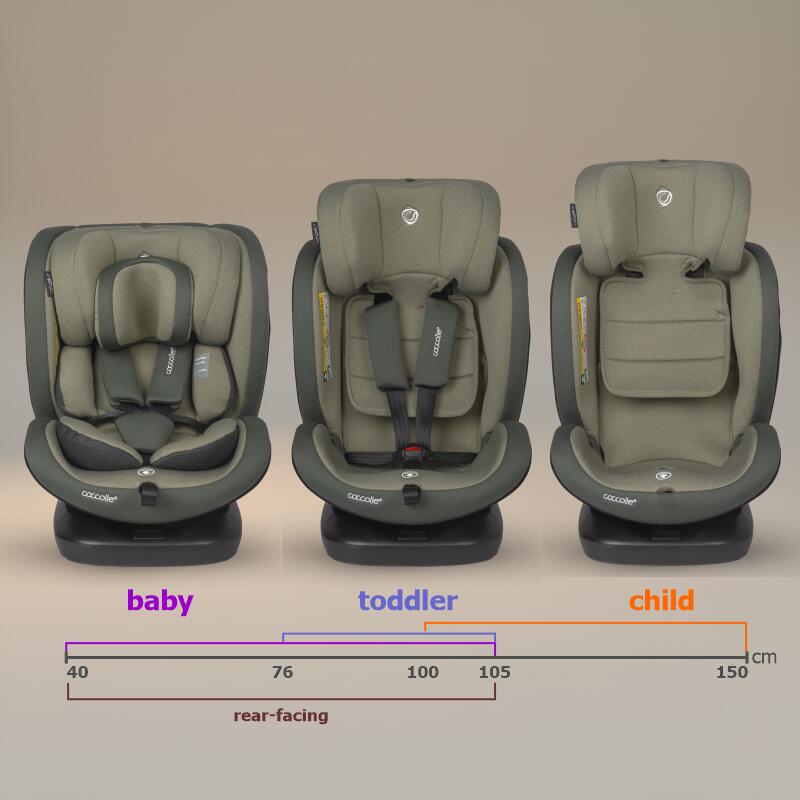 Remarkable for its high-quality textile materials, Coccolle Mydo iSize will surely offer a high level of comfort without overheating and guarantee ergonomics thanks to the reducing pillow and carefully designed newborn headrest. The headrest is made of a dense memory foam that will definetely protect the child's head and neck during the entire duration of use. Since safety is the most important factor in choosing a car seat, we recommend using it in the RWF position (with rear-facing  the direction of travel) up to 105 cm; although the seat can be used facing the direction of travel earlier, we always advise you to opt for the maximum duration of use with the rear-facing the direction of travel.