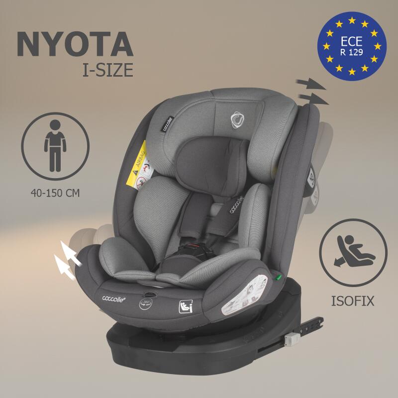 Homologated by the R129 iSize safety standard, the Nyota car seat was designed for children between 40 and 150 cm tall, a group that covers the entire period in which the little one will need to use the car seat. The base of the car seat was designed with the RotEasy system, which means that the car seat can be rotated with one hand, thus making putting, and removing the baby in the seat particularly easy and fast.