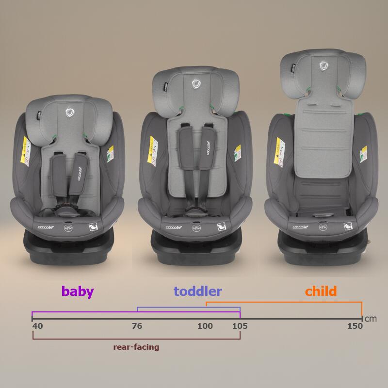 - Extended rear-facing: can be used up to 105 cm with the back facing the direction of travel
