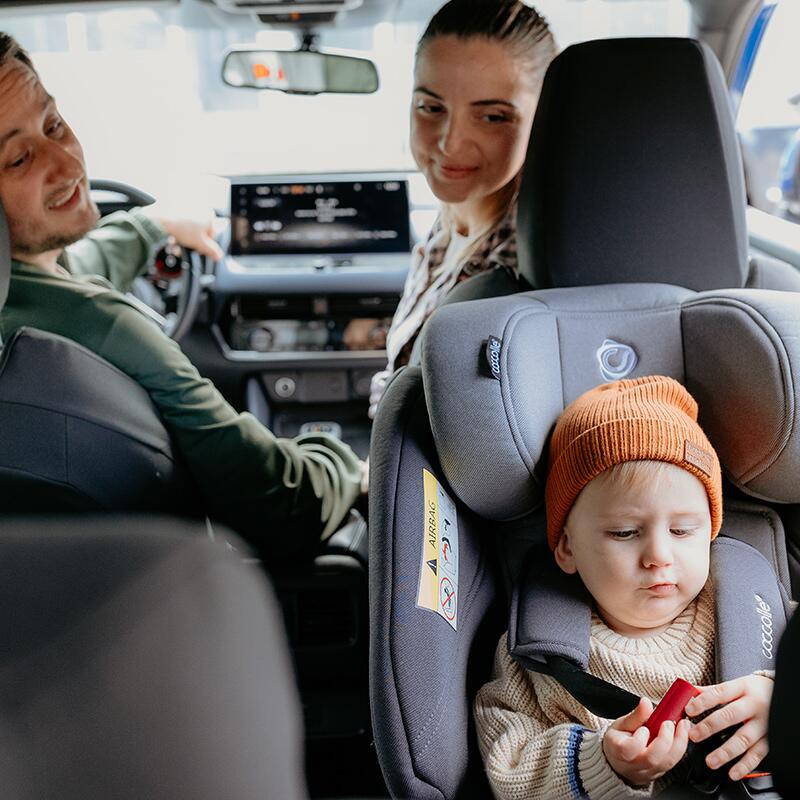 The intuitive use of this product brings with it the joy of being seated in a car seat; perfectly adjustable according to the size of each individual child and according to most cars, the Nyota car seat has 4 adjustment positions on the back facing the direction of travel and one with the back facing the direction of travel. The RotEasy rotation system welcomes parents who can rotate the seat even while holding their child. In addition to these features, the cover made of comfortable and skin-friendly material, easy to clean and maintain, contributes significantly to the pleasure of sitting in the garden.