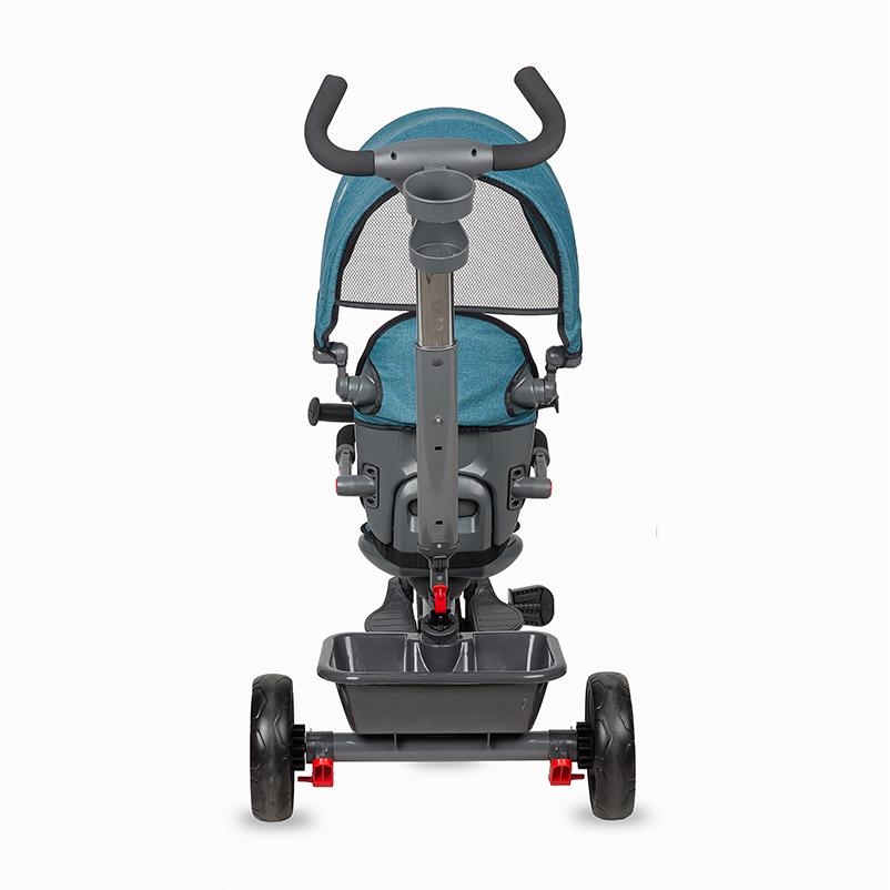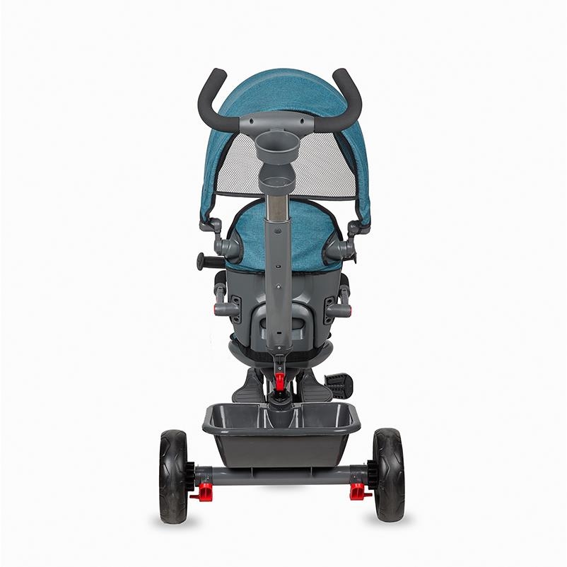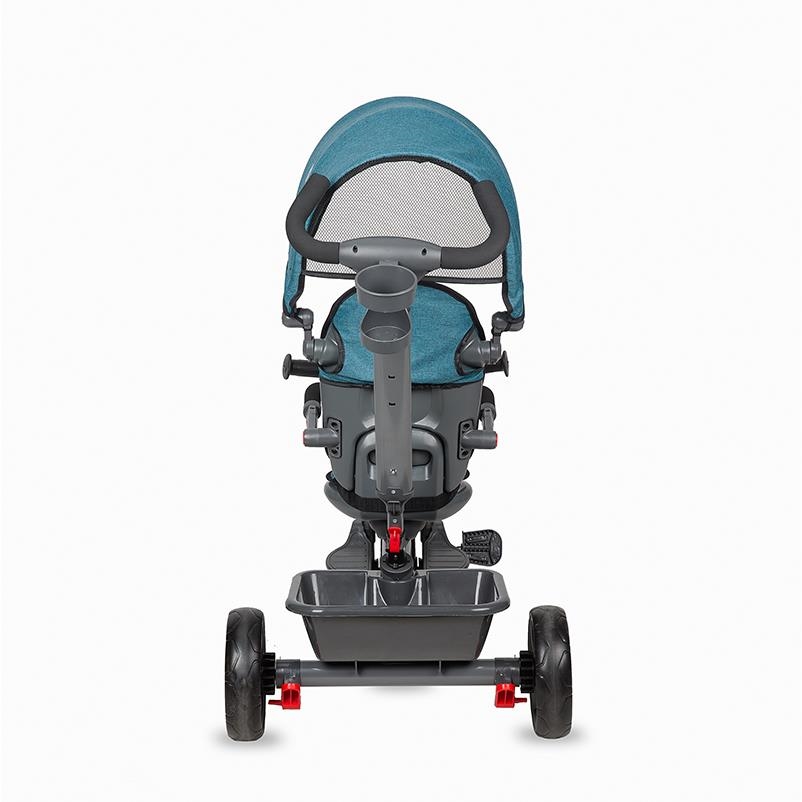Although at first glance, the Primo tricycle may seem like an elementary product, you will see that it is actually a multifunctional product adaptable to the needs of the modern child. If in the first phase, the child uses the tricycle as a hybrid stroller only to be pushed by the parent, as he develops he will be able to benefit from the multiple advantages of this product: footrest, soft and comfortable swivel seat, sleep, UV-protected canopy, non-slip pedals, tilting handlebars, toy basket and cup holder. At the same time, the EVA foam wheels are light and durable, making it possible to use them without worries on any kind of terrain, promising you unlimited outdoor play time.