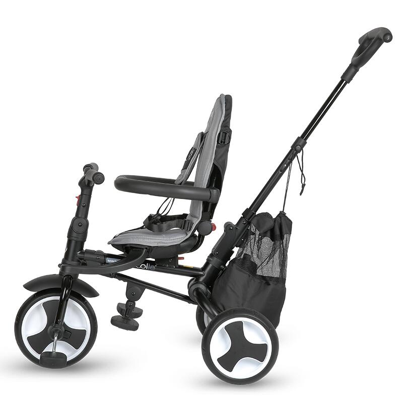 Removable elements (canopy, protection ring, footrest) to result in a classic tricycle usable by older children